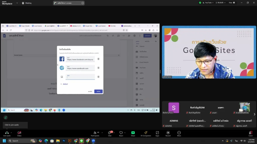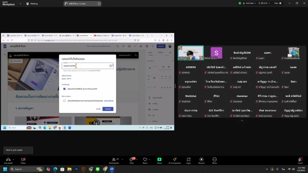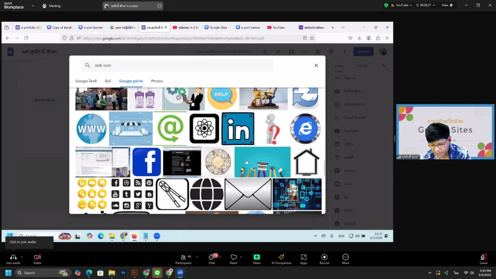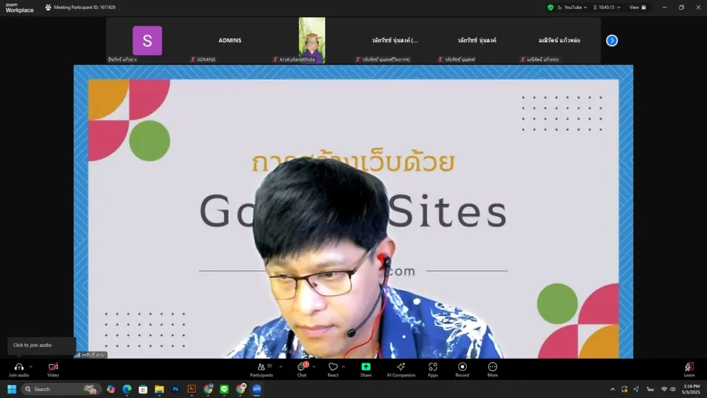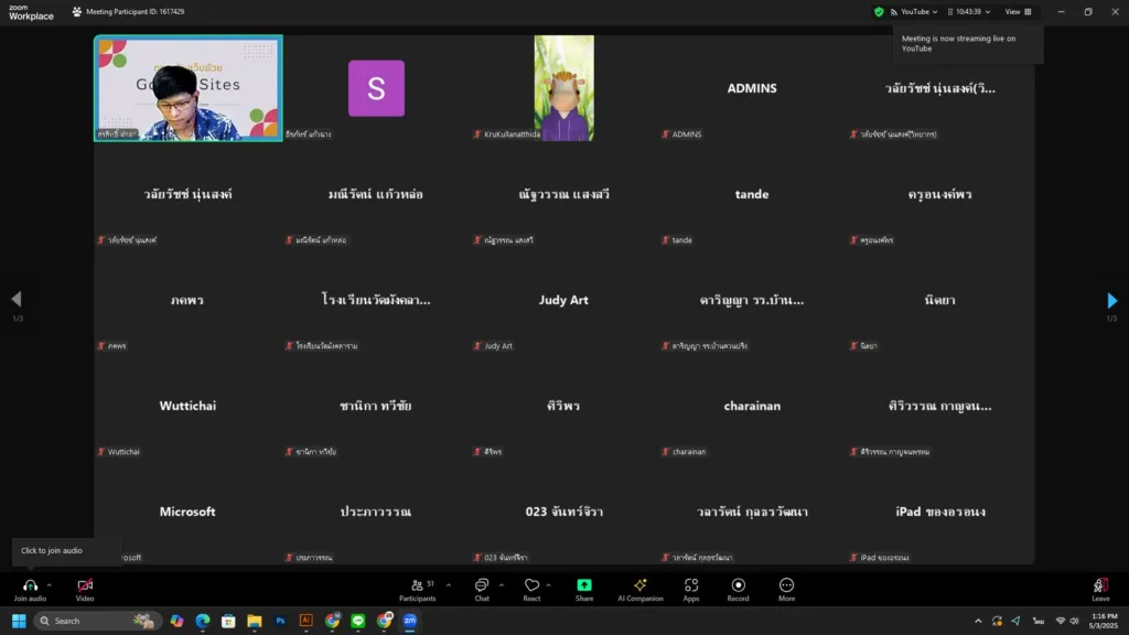 โครงการอบรมในครั้งนี้สะท้อนให้เห็นถึงความสำคัญของการพัฒนาสมรรถนะด้านดิจิทัลของครูและบุคลากรทางการศึกษา เพื่อยกระดับทั้งการจัดการเรียนรู้และการบริหารจัดการข้อมูลทางวิชาการให้มีความเป็นระบบ โปร่งใส และสอดคล้องกับเกณฑ์การประเมินวิทยฐานะในยุคดิจิทัล และต่อไปนี้คือ ประมวลภาพบรรยากาศโครงการอบรมออนไลน์ “การประยุกต์ใช้ Google Site เพื่อเพิ่มประสิทธิภาพการจัดการเรียนรู้และการประเมินวิทยฐานะ” ที่บันทึกกระบวนการเรียนรู้ การปฏิบัติจริง และการพัฒนาศักยภาพของผู้เข้าร่วมทุกท่านอย่างเป็นลำดับขั้น