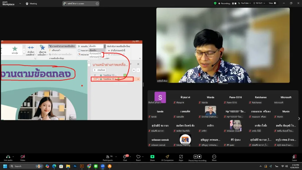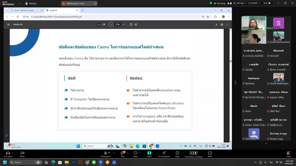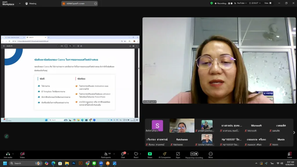 ประมวลภาพบรรยากาศโครงการอบรมออนไลน์ “การจัดทำสื่อเพื่อการนำเสนอข้อตกลงพัฒนางาน (PA) ด้วย PowerPoint และ Canva”