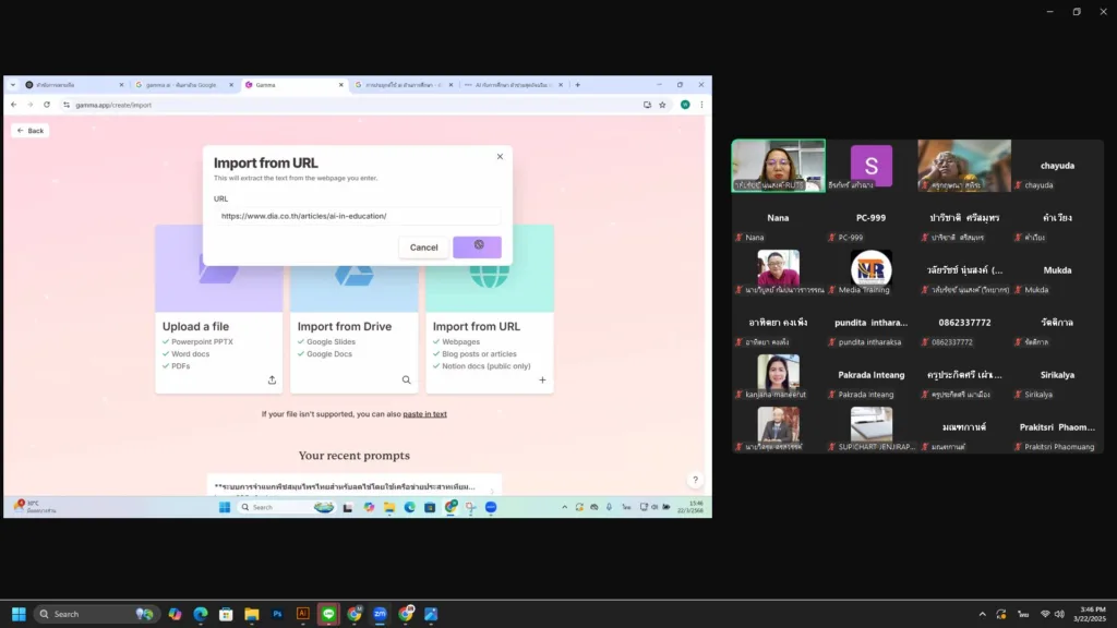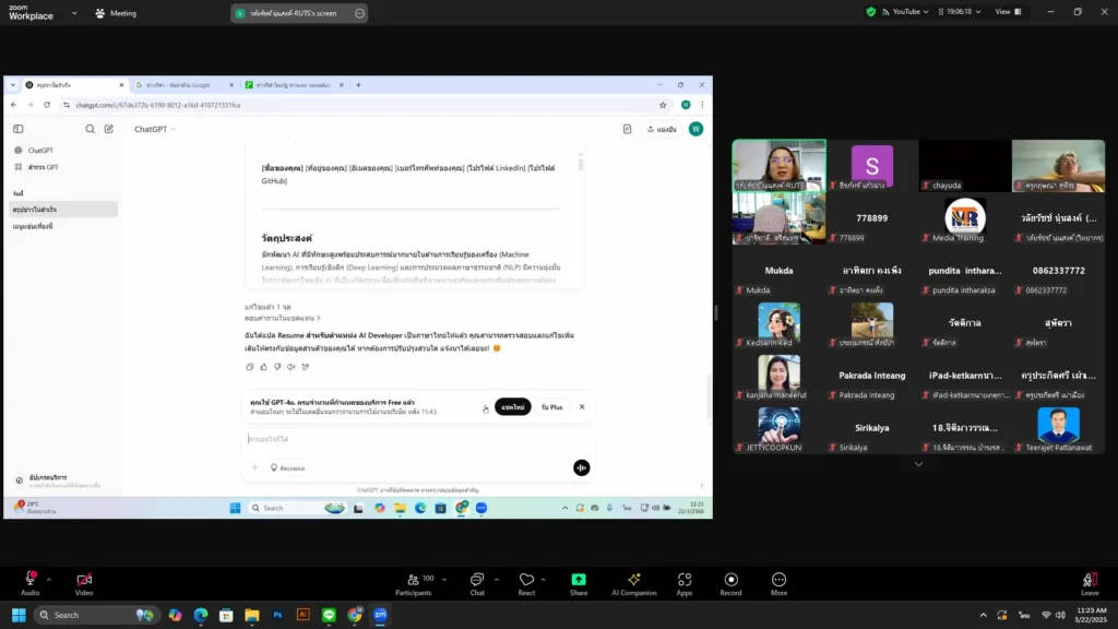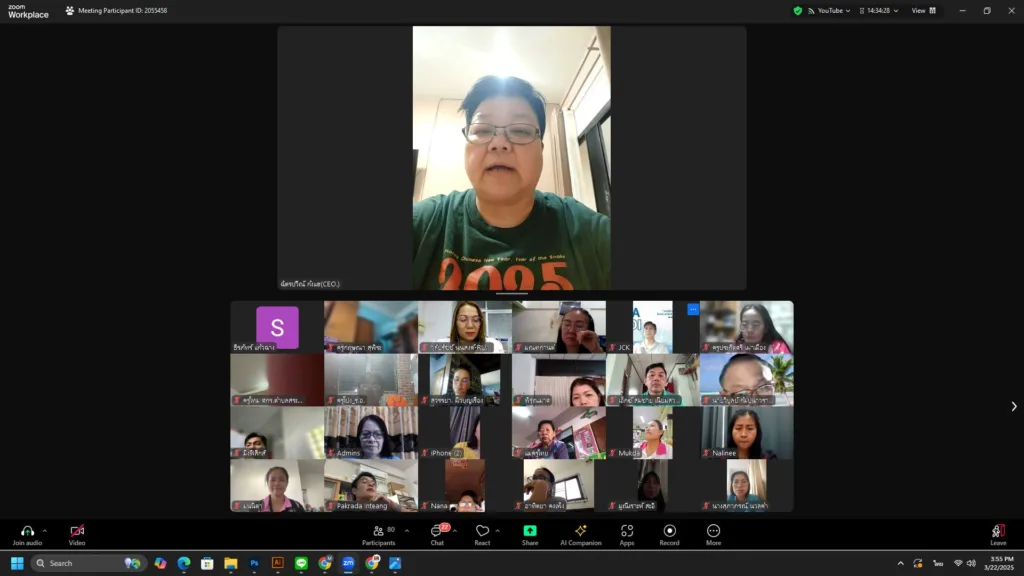 โครงการอบรมครั้งนี้ช่วยยกระดับมุมมองของครูและบุคลากรทางการศึกษาที่มีต่อเทคโนโลยี AI จากการเป็นเพียงเครื่องมือทั่วไป ไปสู่การเป็น “ผู้ช่วยทางวิชาชีพ” ที่สามารถสนับสนุนการทำงานด้านการเรียนการสอนได้อย่างแท้จริง ทั้งในด้านประสิทธิภาพ คุณภาพ และความสร้างสรรค์ และต่อไปนี้คือ ประมวลภาพบรรยากาศโครงการอบรมออนไลน์ “เทคนิคการใช้ AI สำหรับการจัดการเรียนการสอน” ซึ่งบันทึกช่วงเวลาแห่งการเรียนรู้ การลงมือปฏิบัติ และการแลกเปลี่ยนประสบการณ์ของผู้เข้าร่วมทุกท่านไว้อย่างเป็นลำดับขั้น