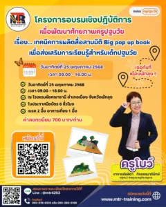 โครงการอบรมเชิงปฏิบัติการครั้งนี้จัดขึ้นเพื่อยกระดับทักษะและศักยภาพของครูปฐมวัยในการออกแบบและผลิตสื่อการเรียนรู้เชิงสร้างสรรค์ในรูปแบบ Big Pop-up Book ซึ่งเป็นสื่อสามมิติที่ช่วยดึงดูดความสนใจของเด็ก กระตุ้นการมีส่วนร่วม และส่งเสริมทักษะพื้นฐานด้านการสังเกต การจินตนาการ และการเรียนรู้ผ่านประสบการณ์จริง อบรมมุ่งเน้นทั้งภาคทฤษฎีและภาคปฏิบัติ...